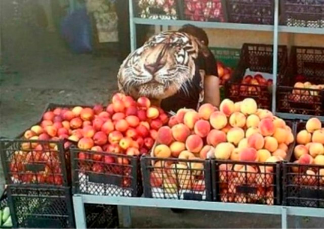 Тигра на персиках растарабанило, в джунгли не пролезет.