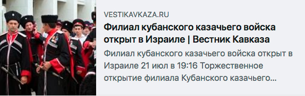 Денис по поводу этой чудесной новости вспоминает старый анекдот: "Мало ему, что он негр". Израильские кубанские казаки - это сильно! Вставай, вставай, еврейское казачество!