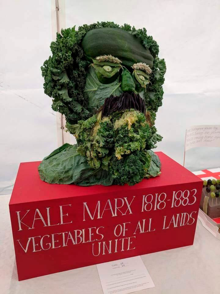 Кале — это кудрявая капуста, да. Ну и подпись: «Овощи всех стран, соединяйтесь!» )