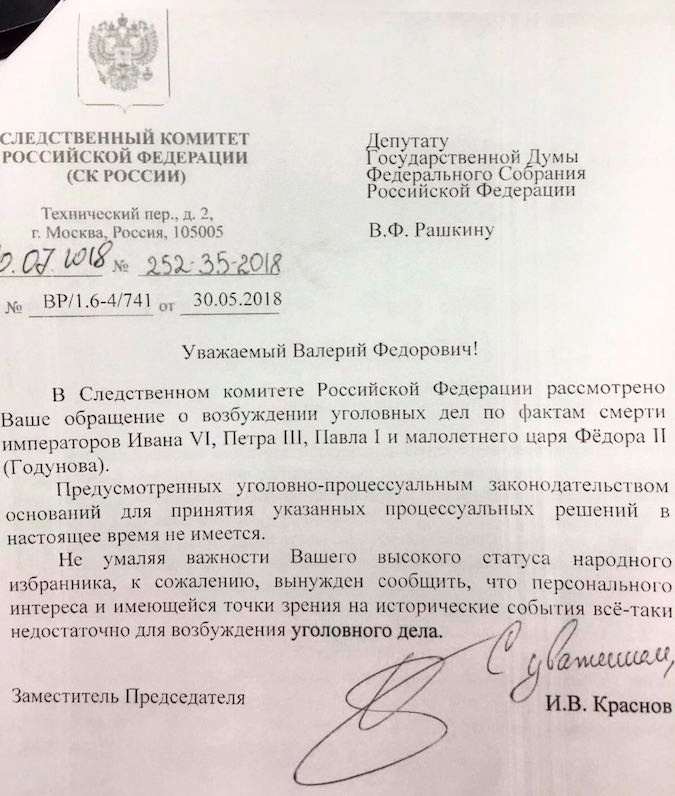 Рашкин попытался затроллить СК в связи с очередным (каким по счету?) расследованием убийства Николая Романова и его семьи.