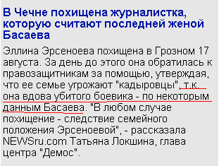 Интересные в Чечне журналистки, удивляется Дмитрий. Некоторые из них являются вдовами боевиков, по некоторым данным - Басаева. То есть они не уверены, но сведения такие есть. Во всяком случае, бородой боевики были очень похожи.