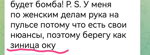 Не понял, что за баннизм про "зиницу оки" -- на каком-то телеграмчике или твиттере? Подумаешь, кто-то неграмотно написал, не вывеска же или заголовок же.