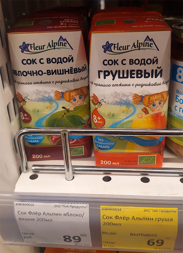 Они, насколько я понимаю, по-тихому переместились даже из категории «нектары» (20–50% сока) в категорию «сокосодержащие напитки» (гомеопатические дозы сока).