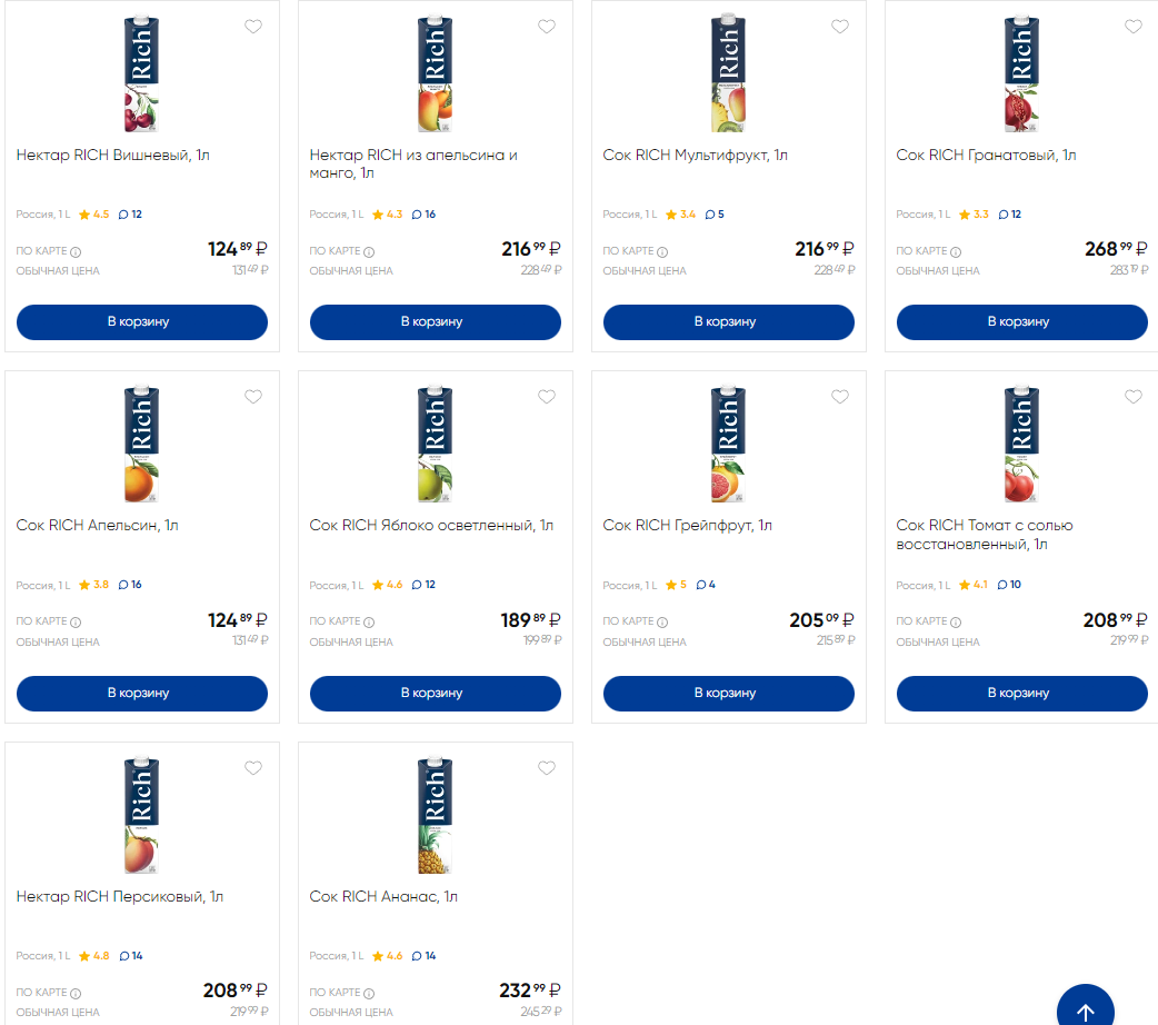 И вот никто никто не удивился, что все соки одного производителя всегда в одну цену: яблочный, виноградный, апельсиновый, сливовый, томатный, морковный...