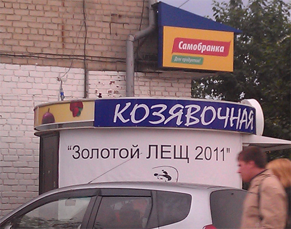Козявочная - это киоск для рыболовов, продают наживку всякую: комариков-козявок. По крайней мере, при близком рассмотрении этого киоска в реале создается такое ощущение. Правда, с другой стороны этого же киоска написано Фрукты-овощи. ))