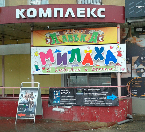 Пивная лавка "Милаха", да еще с любовью к детям - это красиво, считает Олег.
