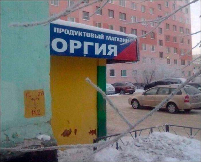 Видимо, продуктовый магазин был "у Георгия", но решили сократить чтоб легче было запомнить