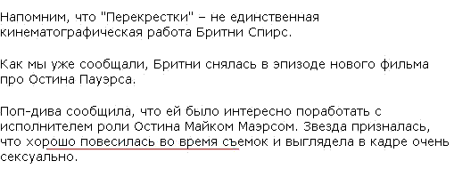 Вот так вот, друзья. Поп-дива не выдержала наглых прикосновений Майка Майерса к ее дивной попе, после чего хорошо повесилась во время съемок. Говорят, Майк был безутешен. Он все время повторял: "Я знал, что она сделает это снова, но кто мог предполагать, что из этого выйдет такой Oops..."