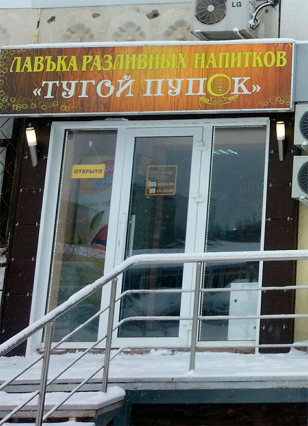Лавка разливных напитков "Тугой пупок" - это оригинально, считает Ivankoe. Видать, ребята немного перепили своих же разливных напитков.