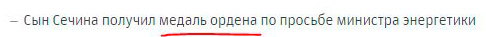 Так сынулька Сечина получил вовсе не орден, обрадовал нас Леонид. Вот что он получил.