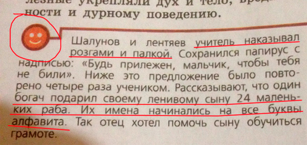Алена прислала выдержку из учебника истории для пятого класса. Рубрика "Посмеемся". А и действительно - обхохотаться можно.