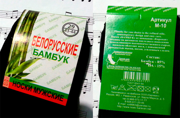 Про носки не понял. Колбаса "Докторская" сделанная из говядины и свинины или "Краковская" сделанная в России никого не смущает? Так и носки Белорусские, сделанные в России из импортного волокна бамбука меня ну никак не смущают.