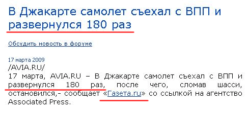 А ведь "Газета.ру" вроде как солидное издание, грустит Алексей. Но даже у них самолет закрутился волчком и взлетел как вертолет.