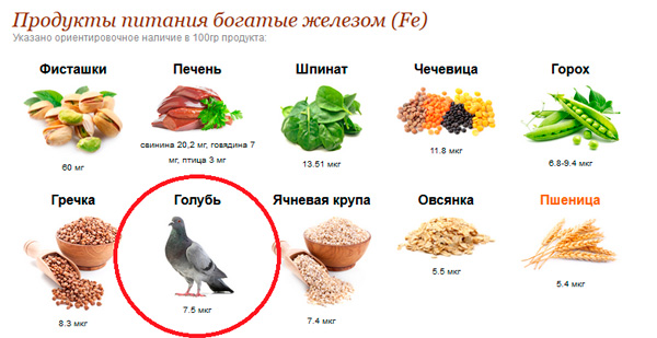Да-да, подтверждает Иван. И о здоровье также нужно как следует заботиться. Есть продукты, богатые железом. Например, голубь. Только голубь, конечно, должен быть окольцованным!
