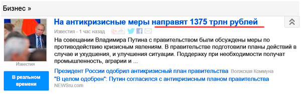 Теперь кризис нам не страшен, считает Игорь. 1375 триллионов рублей - это примерно 21 триллион долларов. Весь ВВП Франции - меньше 3 триллионов долларов. Так что сдюжим!