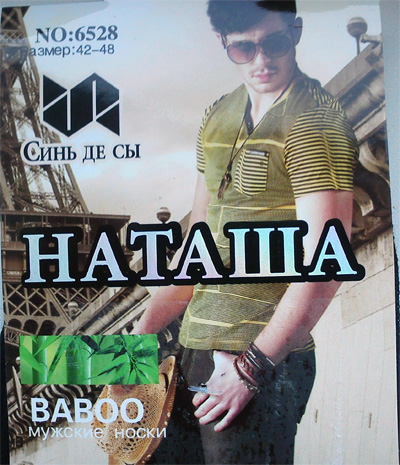 Китайцы - такие затейники, считает Павел. Мужские носки "Наташа" - это красиво. Хорошо, хоть саму Наташу изобразили, чтобы не путаться.