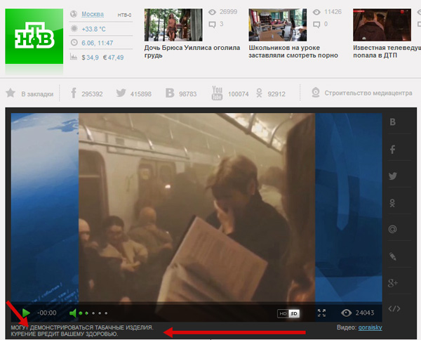 Михаил прислал заботливое предупреждение, появившееся на сайте "НТВ" в ролике о пожаре в метро.