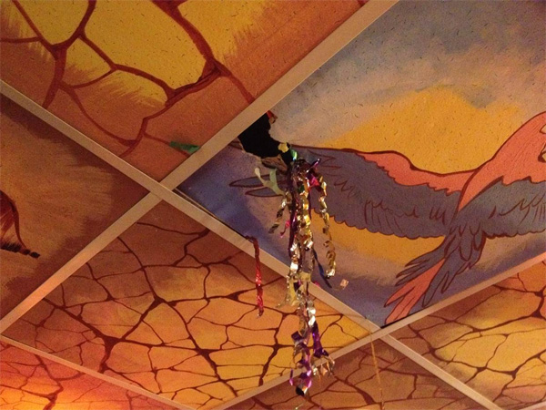 Детишки в полном восторге. Веселая затея весело раздолбала потолок. Укатайка.