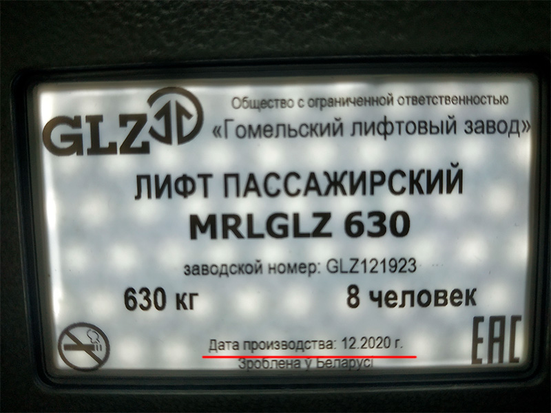 Да в Беларуси уже наступило светлое будущее, уверяет Георгий. Вот этот лифт произведен в декабре 2020 года, а Георгий на нем уже ездил!