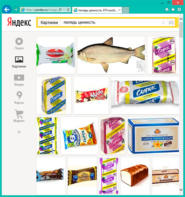 Олег искал в "Яндексе" рыбку пелядь. "Яндекс" ответил, что не до пелядей сейчас, но есть сырки, например.