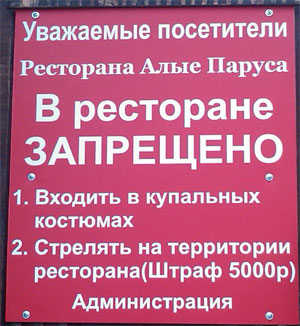 Ещё интересно, в кого/что в ресторанЕ запрещается входить в купальных костюмах.