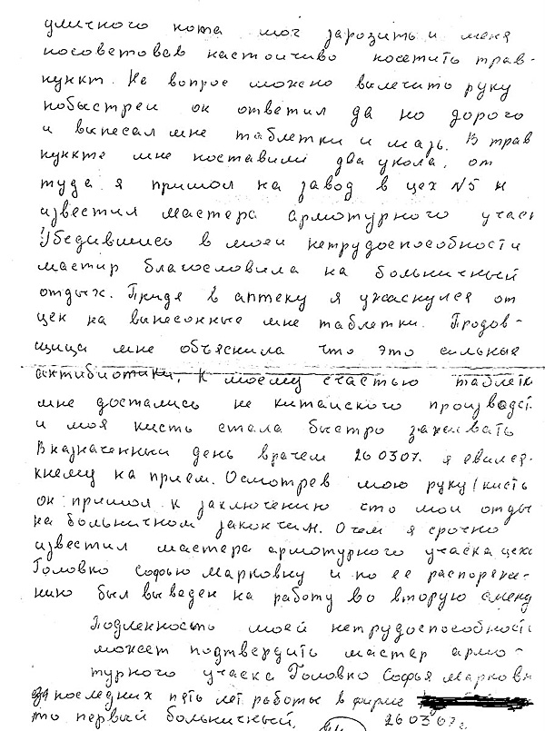 А мне больше из обьяснительной понравилось - "убедившись в моей нетрудоспособности мастер благословила меня домой" Интересные у них там отношения на заводе.