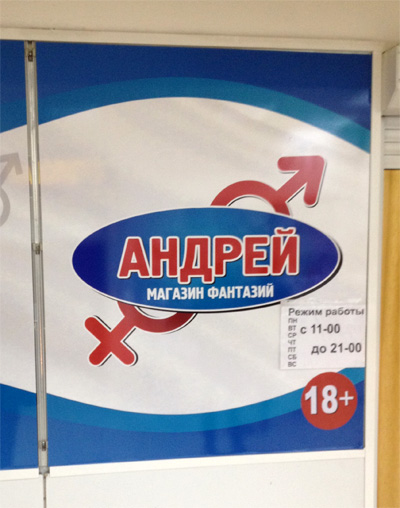 Зато городские магазинчики, замечает Сергей, они куда повеселее. Вот, например, Андрей - исполнит все ваши фантазии.