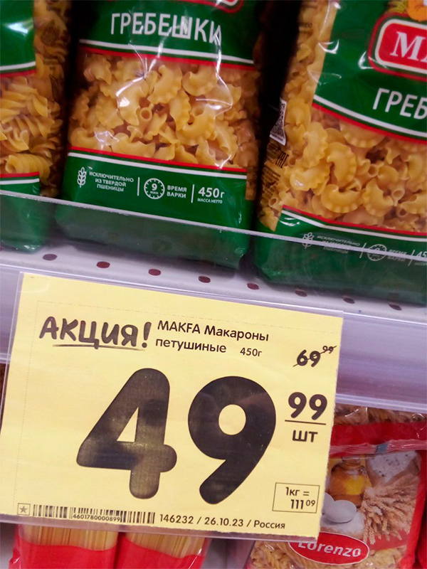 Макарео долго пытался врубиться, что за петушиные макароны такие. Оказалось - гребешки. Видимо, такой запредельный юмор.
