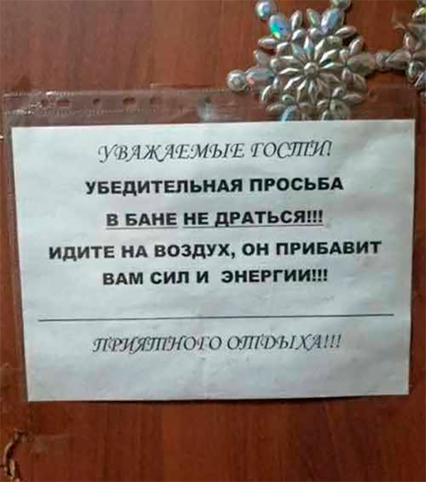 Взяли, понимаешь, манеру - в бане драться! Нормальные люди как делают? На свежем воздухе подрались - и в баню расслабляться.