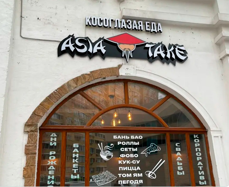 В подмосковных Люберцах тоже креатив проявили, да еще какой. Наверное, гордятся собой: слышь, Палыч, косоглазая еда, гы-гы...