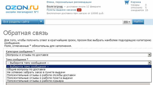 Про "Озон", кстати, зря прикалываетесь 😄 Там есть ОТДЕЛЬНЫЙ пункт в главном меню, который называется "Пожаловаться":