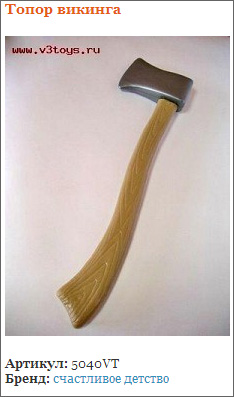 Конечно, счастливое детство, замечает Андрей. Ну да, топор викинга под названием "колун обыкновенный". Но именно таким колуном древние викинги в российских деревнях колют дрова. Ну, может, они и не викинги, а просто пьют много, но ведь колют же! И детишкам надо привыкать!