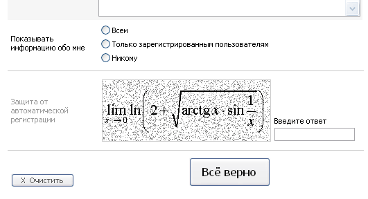Обычно защита от автоматической регистрации делается довольно стандартно:  нужно ввести набор цифр или знаков, изображенных на специально затемненной картинке, исключающей автоматическое распознавание. Однако VИКТОR на одном из форумов обнаружил по-настоящему крутую защиту...