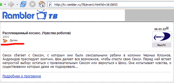 Если у вас есть дети, замечает Dmitry, то "Рамблер ТВ" им предложит отличную детскую сказочку...