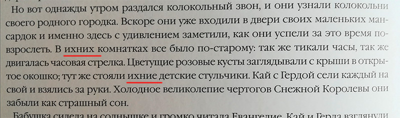 А, вот, возможно. Включая Герду, которая лягла. Дело все в том, что в украинском язьіке слово "їхній" (и производньіе) есть, и, вполне себе, литературное.