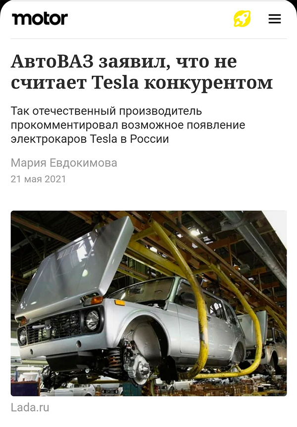 ВАЗ прав - Тесла им не конкурент. Тот, кого есть деньги на Теслу, покупку ВАЗа не рассматривает.