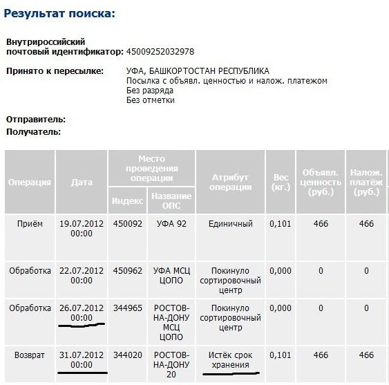 В принципе, это хорошая мысль, замечает Артем. Ростовская почта России отправляет посылку обратно "по истекшему сроку хранения", даже не доставив ее до отделения связи. А что, все логично: сами ее везли-везли, а потом поняли, что срок хранения уже истек, пока везли.