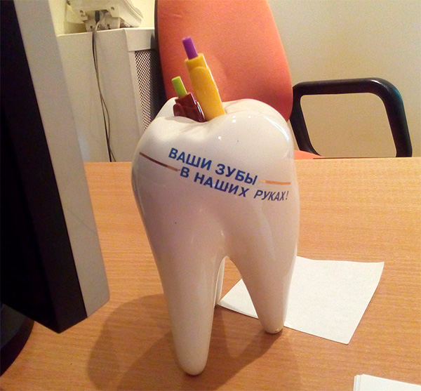 Как-то очень двусмысленно это все выглядит, считает Сергей. Наши зубы в их руках превращаются в подставку для ручек?