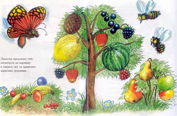 Max предлагает нам посмотреть на картинку из детского "Фруктово-ягодного букваря" и сказать, все ли правильно изобразил художник.