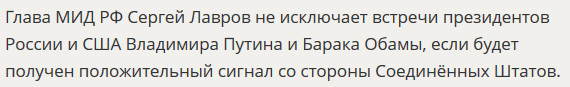 Сергей Лавров, прочитала Лина на Russia Today, назвал условие встречи Владимира Путина и Барака Обамы.