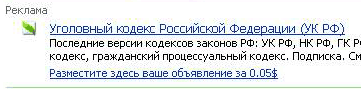 В Уголовном кодексе РФ, радуется CraB, теперь можно разместить свое объявление. Причем совсем недорого...