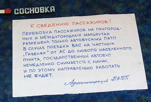 В районе села Сосновка, как рассказал Anton Lezhepekov, администрация ПАТТ всеми силами борется с конкуренцией жутких "Газелей", которые ка-а-а-а-ак прыгнут из кустов и ка-а-а-ак перевезут всех пассажиров...