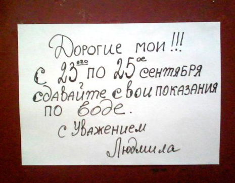 Да-да, дорогие, призывает Михаил. Показания в бутылочку запечатали - и пускайте по воде. По почте сдавать - нет, нельзя, только по воде.
