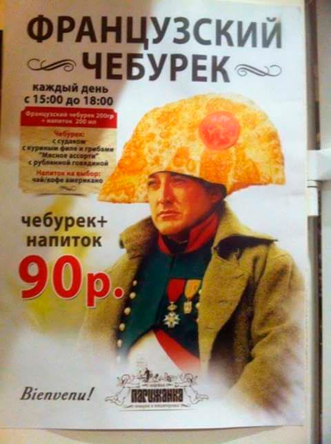 Я с ним согласен. "Французский чебурек" - это уже смешно. Теперь нужно сделать плакат с каудильо Франко, на башке которого румяный испанский хачапури.
