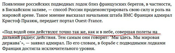 Дмитрий с гордостью и радостью сообщает: французы на "Ленте" признали, что российские подводные лодки - самые крутые подводные лодки в мире!