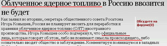 Проблема только в том, что официальные лица, когда называют отработанное топливо облученным, либо не понимают смысла происходящего, либо сознательно вводят общество в заблуждение.