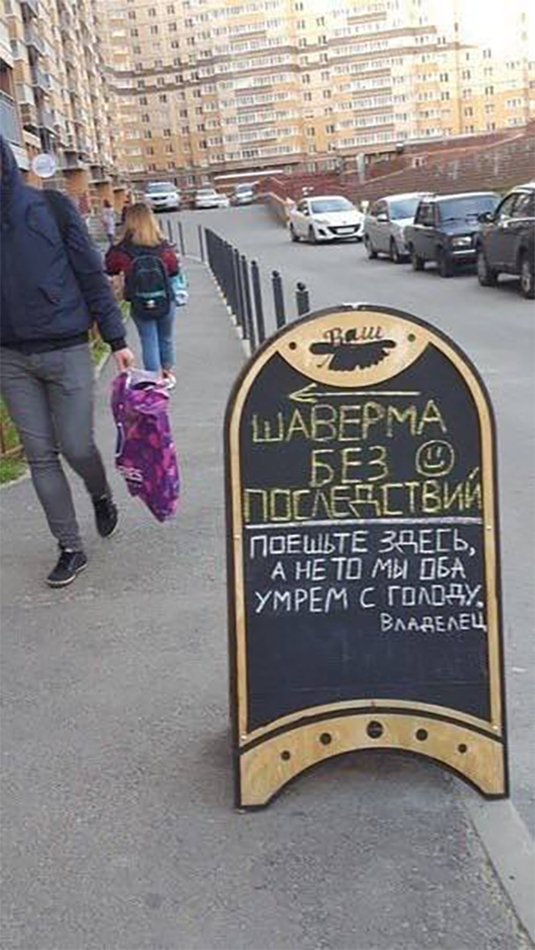 - Если никто не купит у них шаурму, у хозяев будет что кушать - непроданная шаурма.