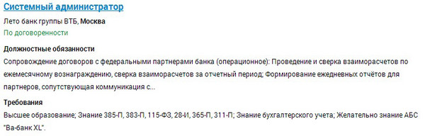 А вот сисадмином в Москве устроиться действительно очень тяжело. У эйчаров такие наборы требований, что нужно 20 лет только учиться на сисадмина, кроме школы, чтобы все это знать.