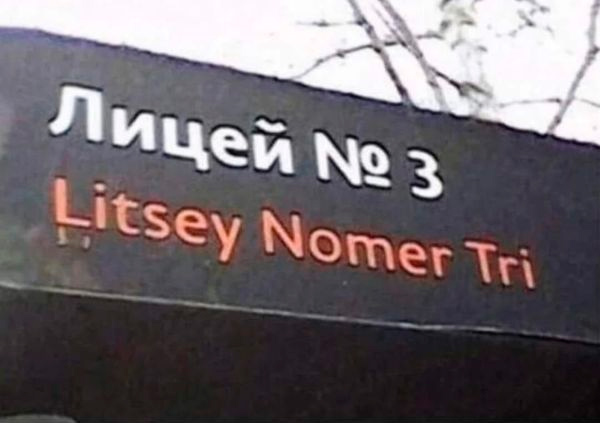 С лицеем вроде уже стопятьсот раз разбирали. Это надпись на остановке, их делают для навигации иностранцев, которым сам лицей нафиг не сдался, но надо проехать до остановки "Лицей №3". И если они начнут спрашивать бабуль про "лайсиам намба сри", это лишь вызовет нездоровые смешки.