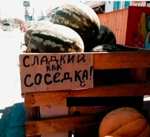 Очень сомнительная реклама, вздыхает Кендр. Это они мою соседку Алевтину Кондратьевну не видели. Если они её назовут "сладкой", то она этим находчивым ребятам живо засунет арбуз знаете куда?..